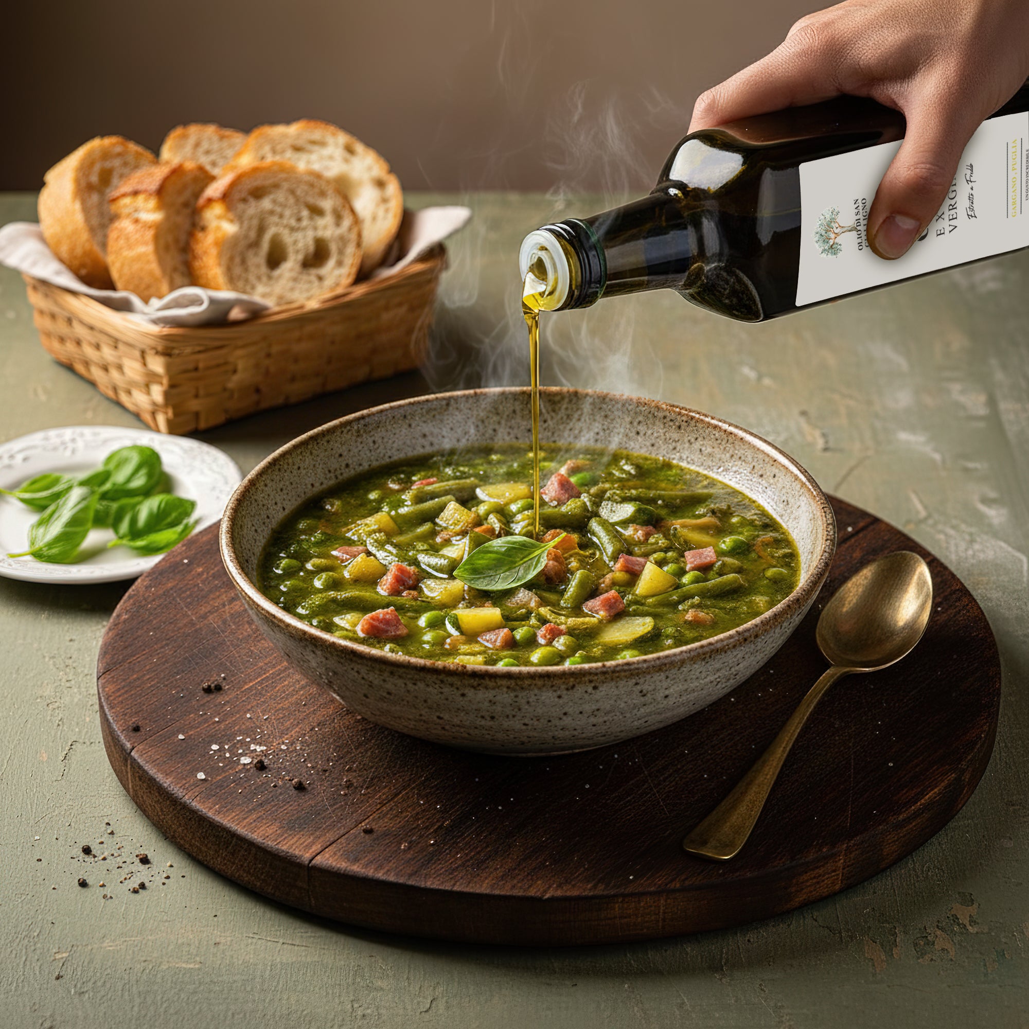 Olio di San Gialligno entsteht in den ursprünglichen Bergen des Gargano, wo Meeresluft, Sonne und jahrhundertealte Olivenhaine ein außergewöhnlich aromatisches Öl hervorbringen. Jede Flasche steht für Handwerk, Tradition und pure italienische Authentizität.